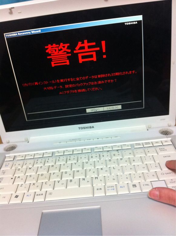 この表示が現れてくれるので後はOKをひたすら押し続け、リカバリ準備完了。
